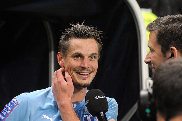 Markus Rosenberg är lagkapten i Malmö FF. Han gjorde matchens enda mål. Vänsterbacken Pa Konate spelade fram till målet.