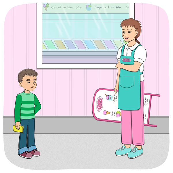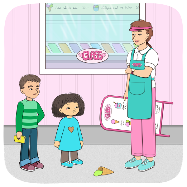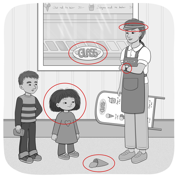 Minja och MinoLäs  och lyssna på bildserien Glassen!