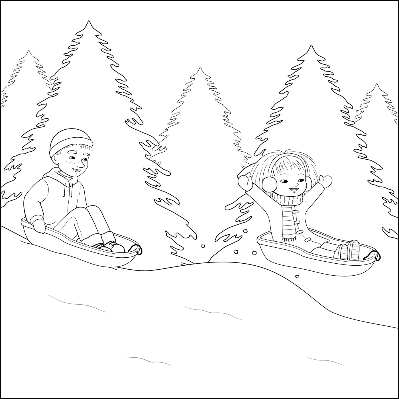 Skriv ut bilden med Minja och Mino och färglägg den.
