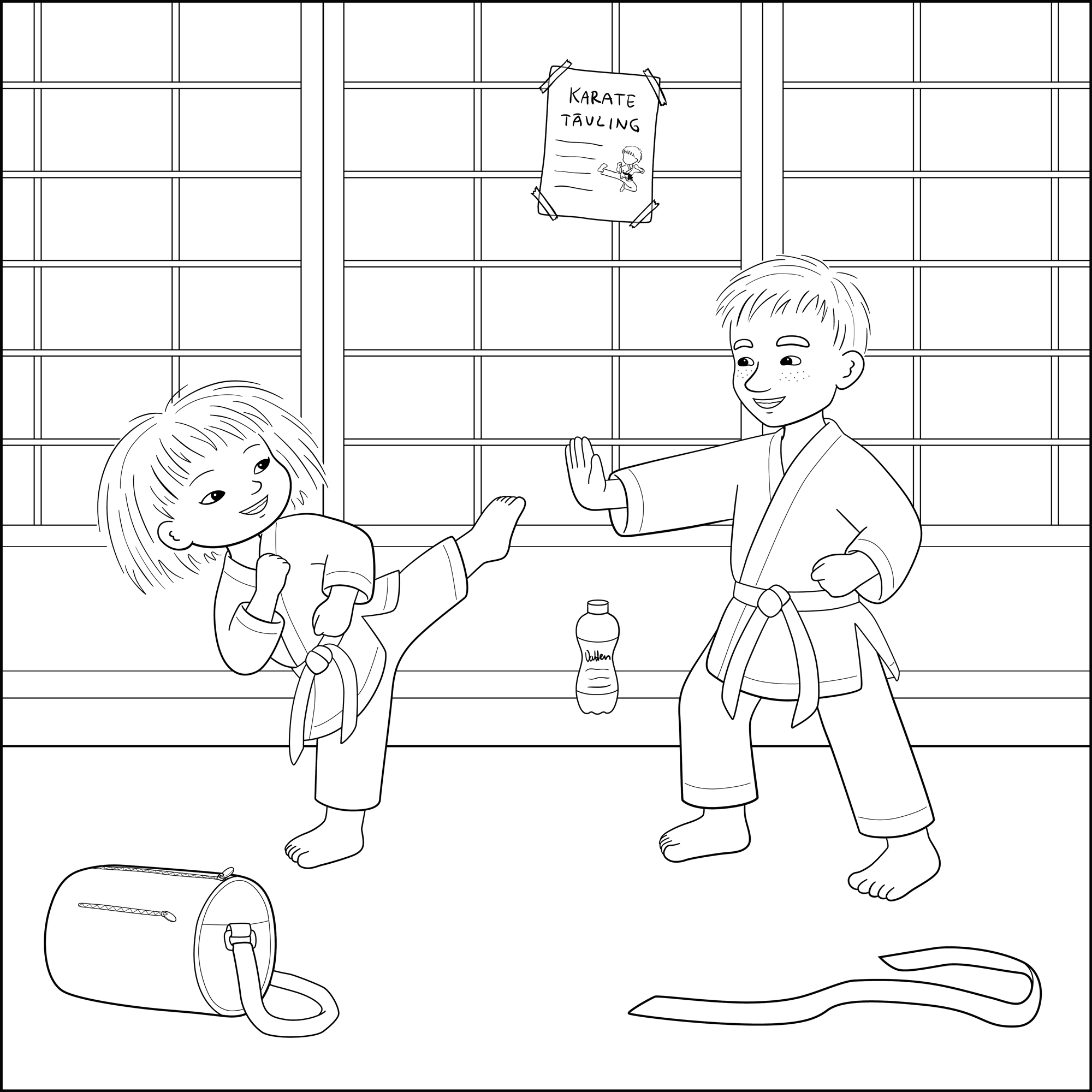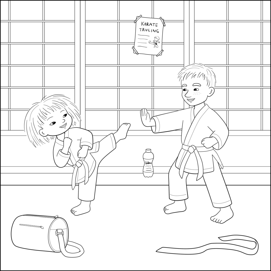 Skriv ut bilden med Minja och Mino och färglägg den.