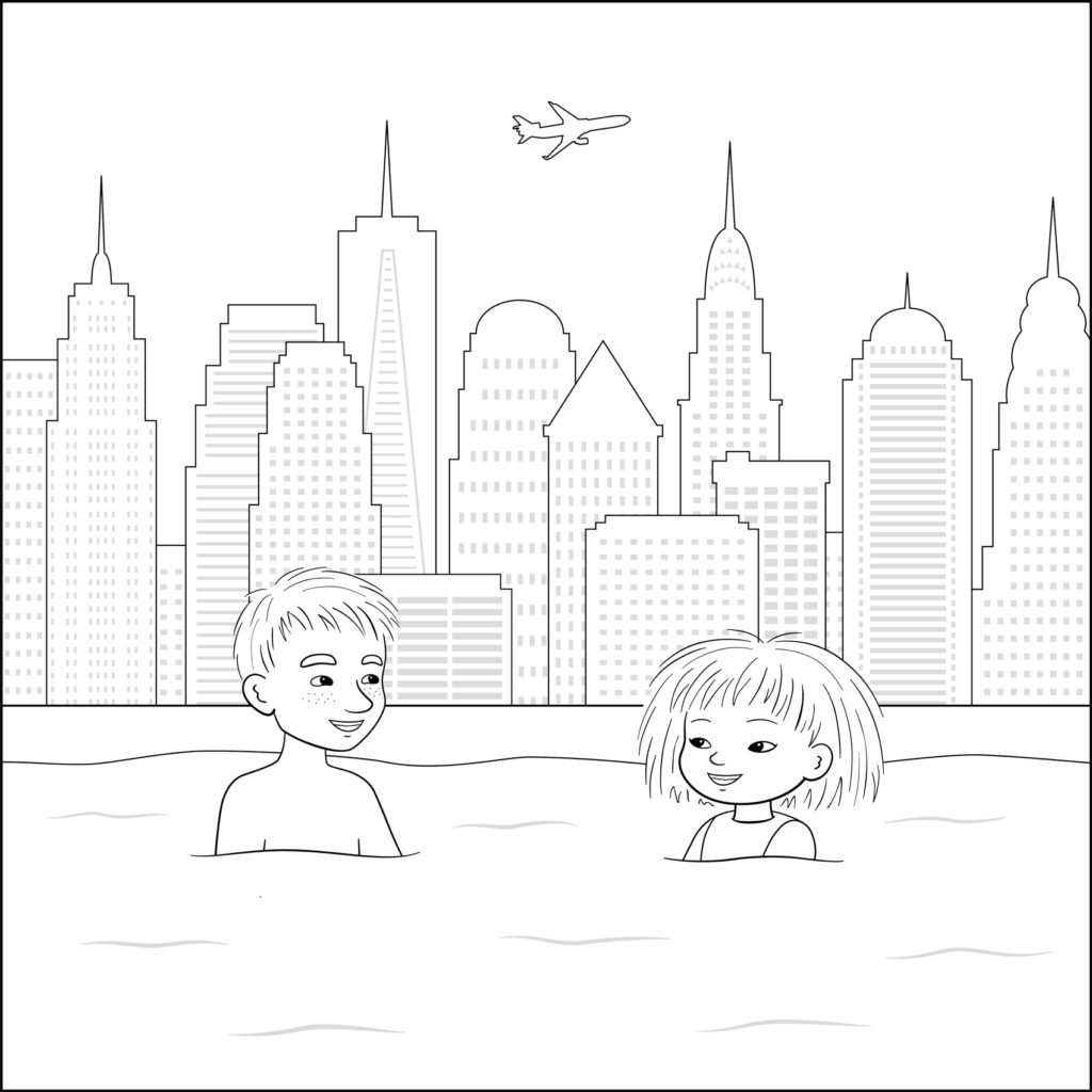 Skriv ut bilden med Minja och Mino och färglägg den.