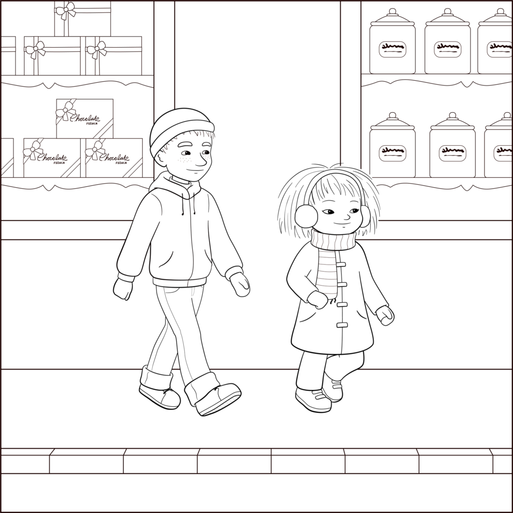 Skriv ut bilden med Minja och Mino och färglägg den.