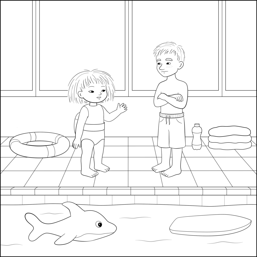 Skriv ut bilden med Minja och Mino och färglägg den.
