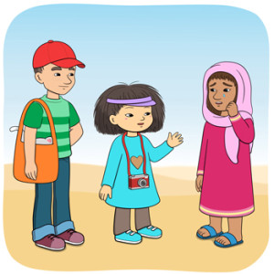 Minja och Mino promenerar i öknen.
